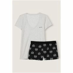 Victorias Secret PINK Victoria’s Secret PINK Heather Stone Grey & Black Logo Print Sleep Boxy Set