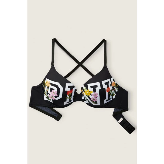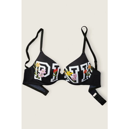 Structured, underwire cups Push-up Fully adjustable front straps – with strappy back detail that can be worn as classic or racerback with convertible hook Front closure clasp Imported.