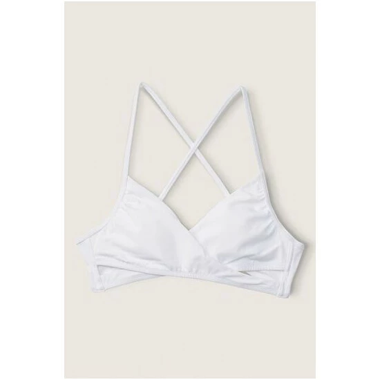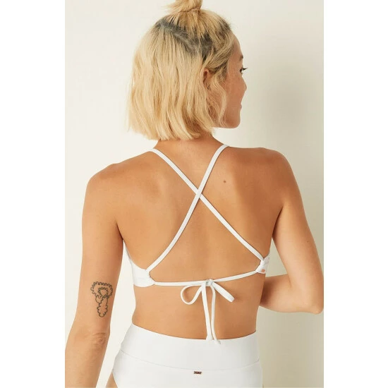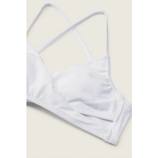 Lightly lined, wireless Removable padding Cross front detailing Adjustable shoulder straps and center back tie Imported: recycled polyamide/elastane/polyester ;