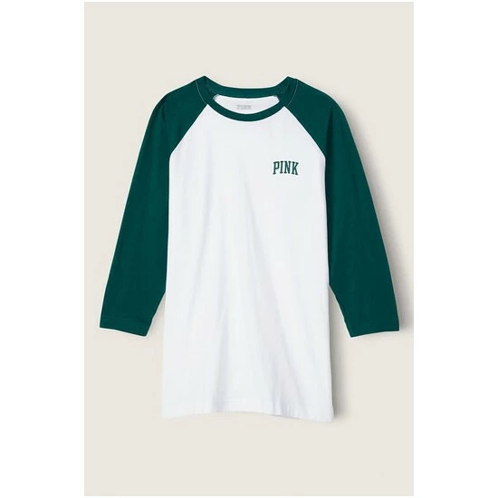 Oversized fit. Crew neckline. Raglan armhole. 3/4 length sleeve. 29 body length.