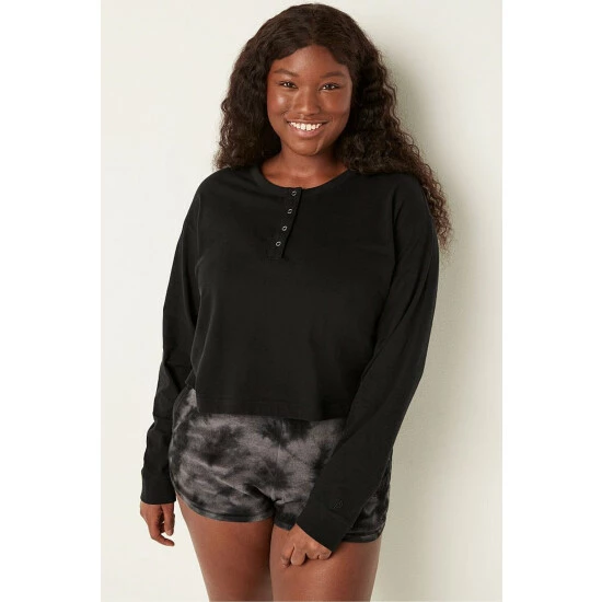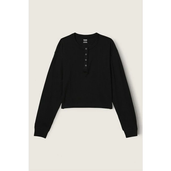 Victorias Secret PINK Victoria’s Secret PINK Campus Crop Long Sleeve Henley Tee