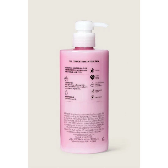 FEEL COMFORTABLE IN YOUR SKIN. Your #1 obsession for full-body softness and hydration. This best-selling dream cream is all whipped up for a cloud-like feel.;Smooth on skin for a soft, healthy-looking glow. INGREDIENT SPOTLIGHT: COCONUT OIL. Made up of;mega-softening Fatty Acids, Coconut Oil is one of nature’s most powerful ingredients. Dermatologist tested. Dye-free formula. Quick absorption. Daily Essential. From formulation to finished product, we are free of animal testing. 25% Post Consumer Recycled Plastic Bottle. 414 ml/14 fl oz.