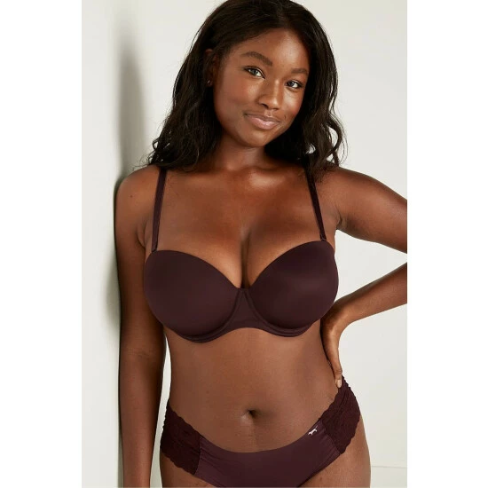 Push-up Soft padding Fully adjustable and removable straps – wear classic, crossback or strapless Hook-and-eye back closure No-slip silicone grip strip at top ; bottom edge Imported: recycled nylon/spandex