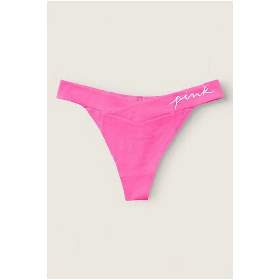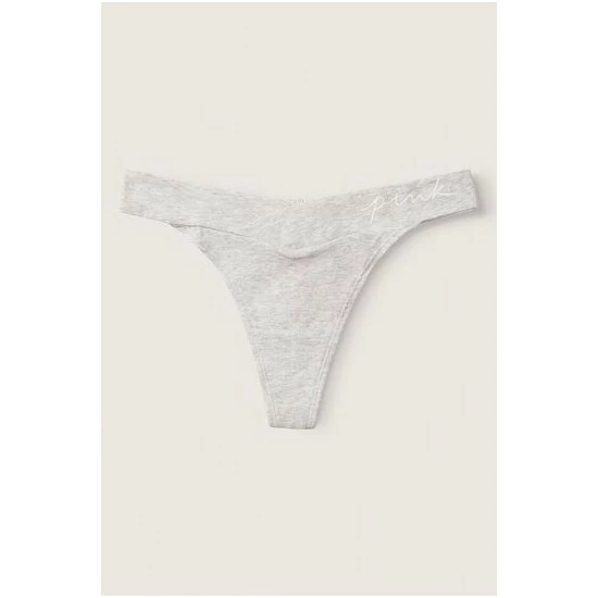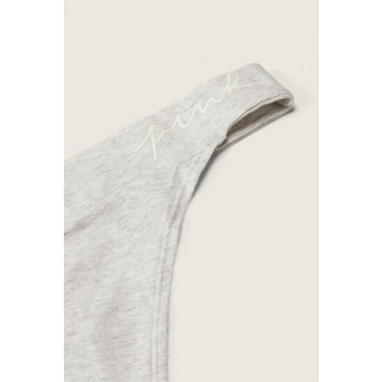 Victorias Secret PINK Victoria’s Secret PINK Cotton Crossover Thong Panty Heather Stone Grey With Graphic