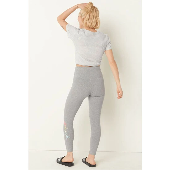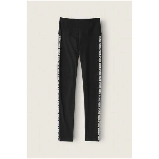 Victorias Secret PINK Victoria’s Secret PINK Cotton High Waist Full Length Legging Pure Black With White Ticking