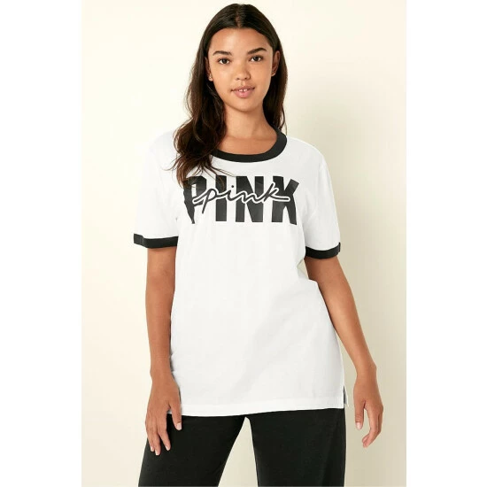 Victorias Secret PINK Victoria’s Secret PINK Cotton Short Sleeve Campus Ringer T-Shirt