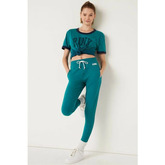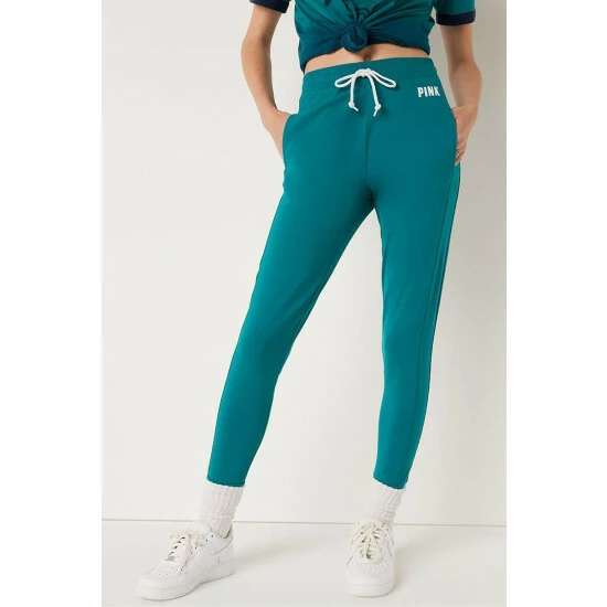 Victorias Secret PINK Victoria’s Secret PINK Deep Lake Green Cotton High Waist Joggers