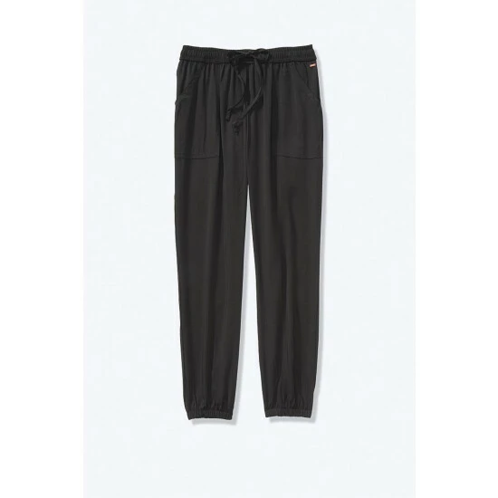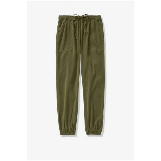 Relaxed fit. Adjustable drawstring, smocked elastic waist. Patch pocket. 27” inseam.