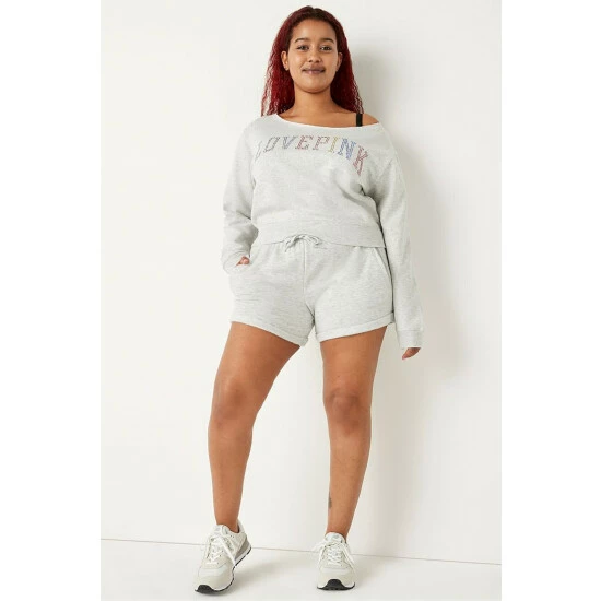 Everyday comfy fleece. Mix & match for endless outfit options. Relaxed fit. Drawstring waist. 4.25” inseam. Rolled hemline. Side pocket details.