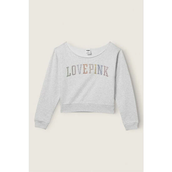 ;Relaxed off-the-shoulder fit This crew has a raw edge neckline to wear either on or off the shoulder New Everyday Lounge fleece 21″ body length Imported cotton/polyester ;