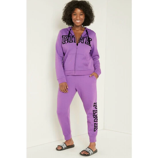 Victoria’s Secret PINK skinny jogger in slim, tapered fit with adjustable drawstring waistband and ribbed banded bottom. Features side pockets and 27.5″ inside leg measurement. Machine Washable. Size Guide: XS = 6, S = 8-10, M = 12, L = 14.