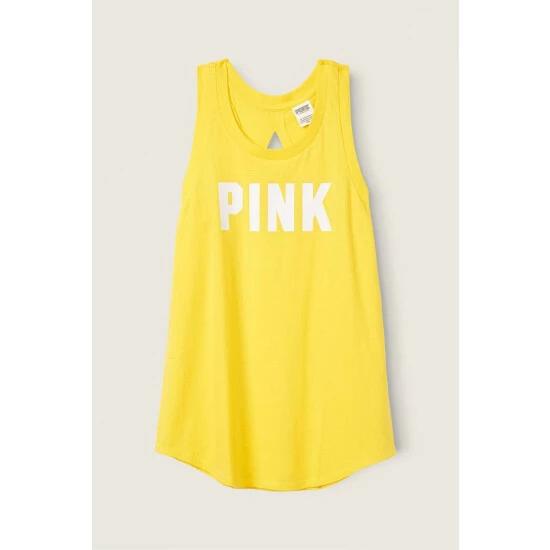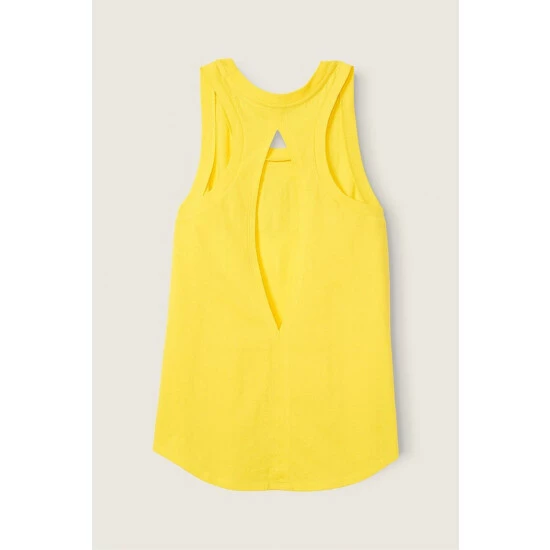 ;Partially made from recycled materials Relaxed fit Crew neckline Racerback Slit back detail 27.5″ body length Imported cotton/polyester
