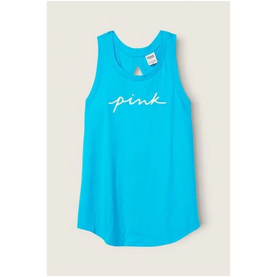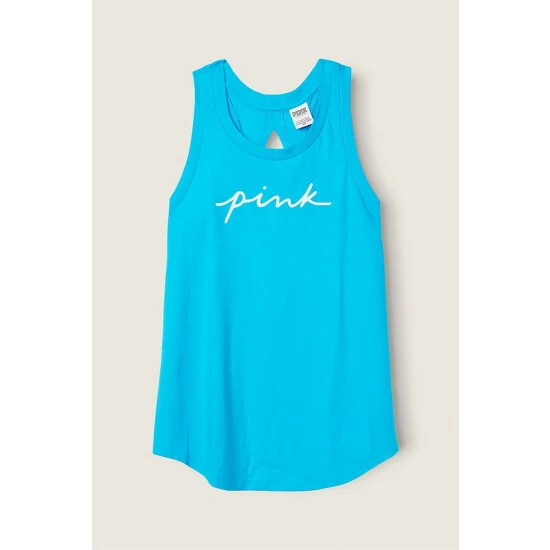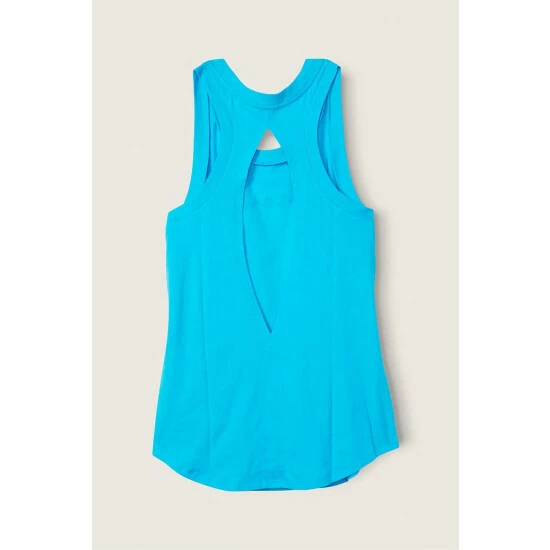 ;Partially made from recycled materials Relaxed fit Crew neckline Racerback Slit back detail 27.5″ body length Imported cotton/polyester