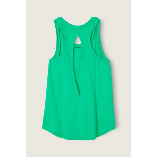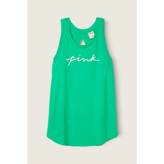 ;Partially made from recycled materials Relaxed fit Crew neckline Racerback Slit back detail 27.5″ body length Imported cotton/polyester