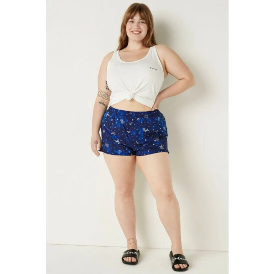 Sleep boxy relaxed fit, size down if you prefer a more fitted style. Wear with waistband flipped down for best fit. Script elastic. Flannel fabric. 2 inseam.