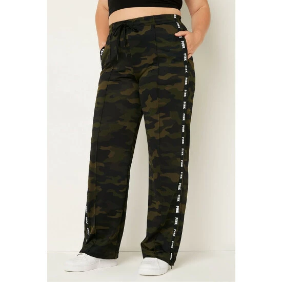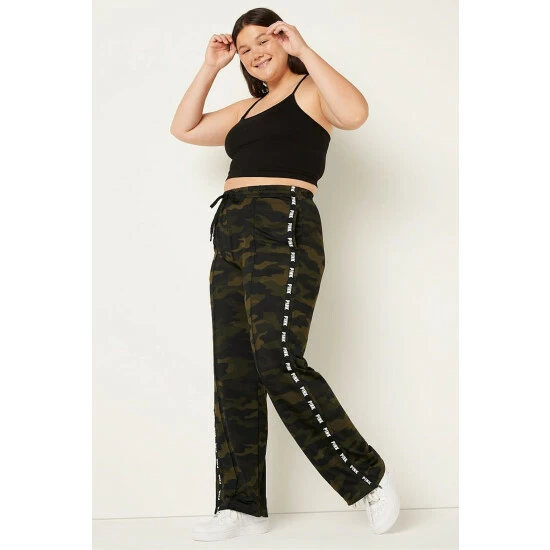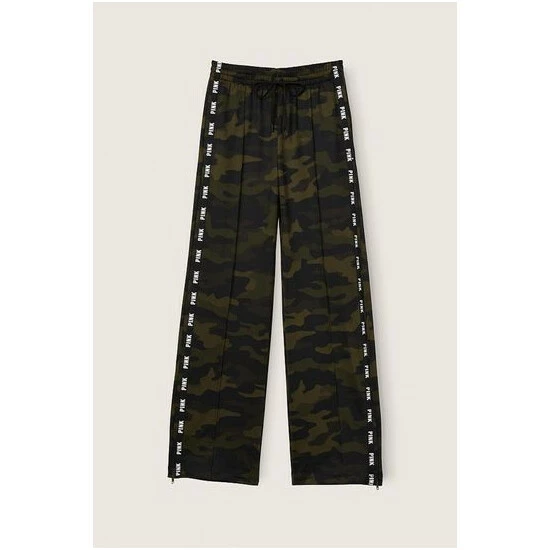 This style is partially made from recycled materials. High Waist. Relaxed Fit. Tape Side Stripe Detail. 2 Side Phone Pockets. Drawstring at Waist. Pintuck Detail. 30.5 Inseam.