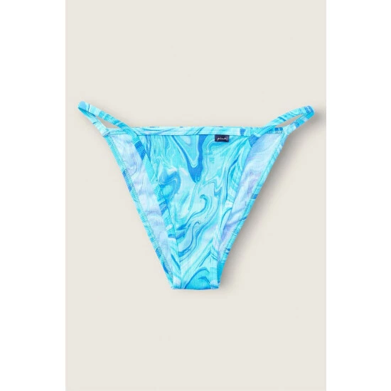 Bikini coverage Soft cotton rib fabric High leg string sides Low rise Imported: cotton/polyester/spandex