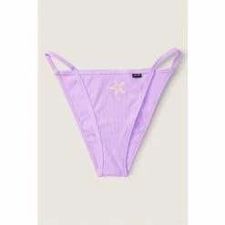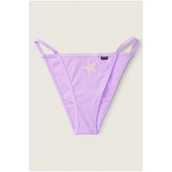 Bikini coverage Soft cotton rib fabric High leg string sides Low rise Imported: cotton/polyester/spandex