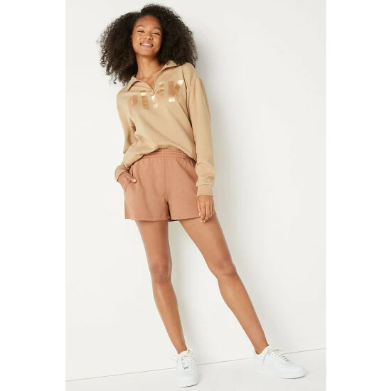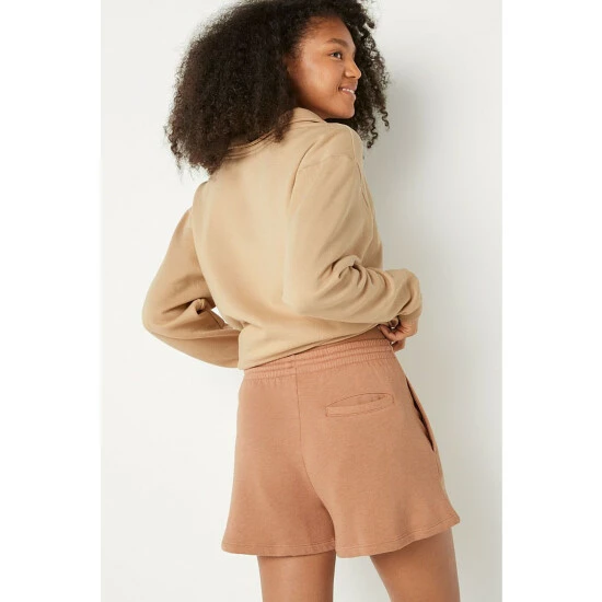 High waist. Everyday fleece. Relaxed fit. Elastic waistband with interior drawcord. 2 side phone pockets. Back welt pocket. 3.5” inseam.