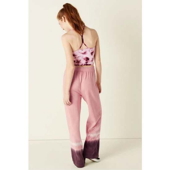 Victorias Secret PINK Victoria’s Secret PINK High Waist Wide Leg Pant Damsel Pink With Placed Tie Dye