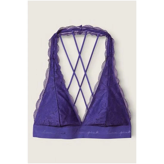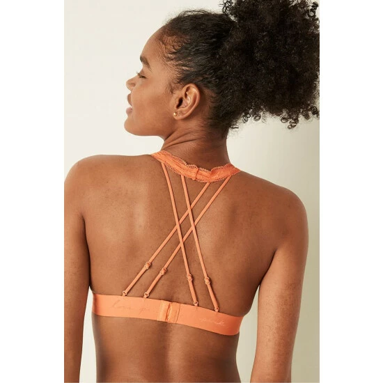 Victorias Secret PINK Victoria’s Secret PINK Lace Halter Bralette Coral Cream