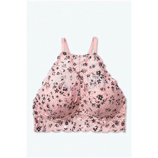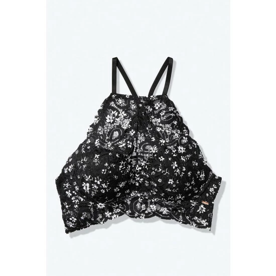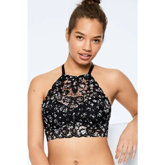 Structured underwire. Push-up. Allover lace. Fully adjustable straps at back neck. Hook-and-eye back closure.