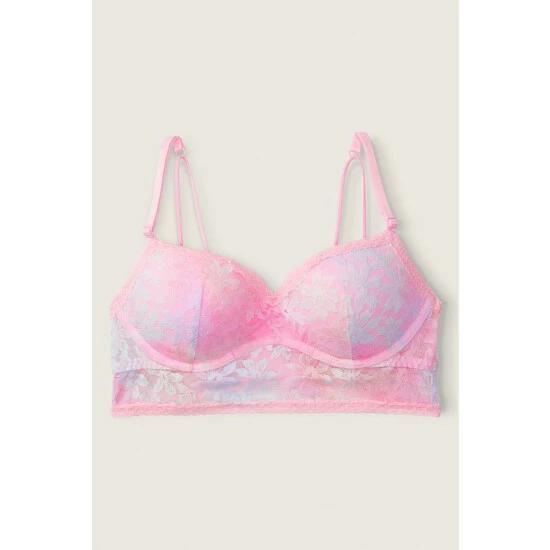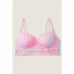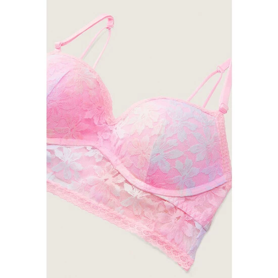 Structured, underwire cups. Push-up padding. All over floral lace. Adjustable straps with strappy back Hook, eye back closure.
