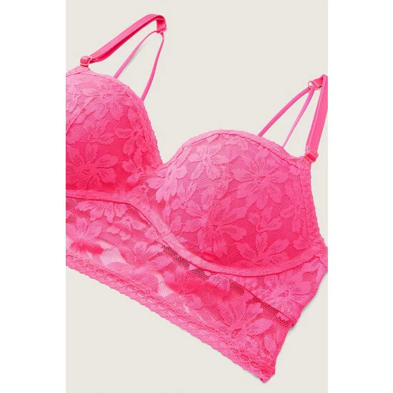 Structured, underwire cups. Push-up padding. All over floral lace. Adjustable straps with strappy back Hook, eye back closure.