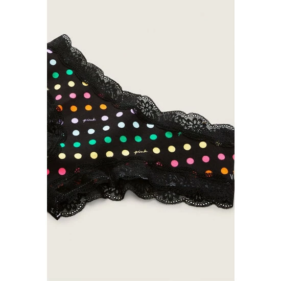 Cheekster coverage Soft cotton body with floral lace trim at waist and legs Extra low rise Imported: cotton/spandex/nylon/recycled nylon ;