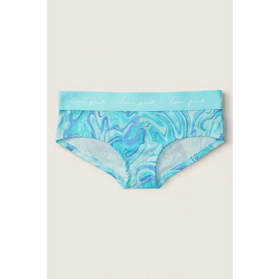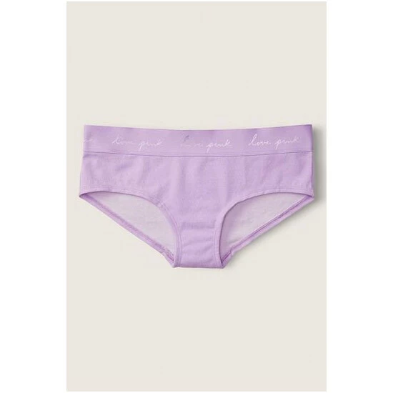 Hipster coverage. Soft fabric. Script logo elastic waistband. Low rise.