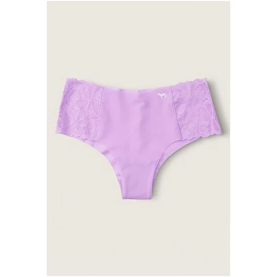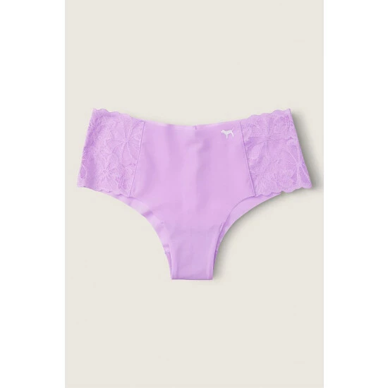 Seamless raw-cut edges. Lace trim detail. Low rise.