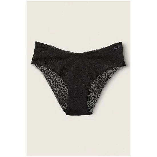 Bikini coverage. Mid rise V front, high leg fit. No-show lace fabric 4-way stretch. Breathable. Raw-cut edges. No panty lines.