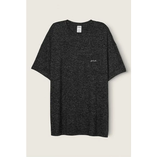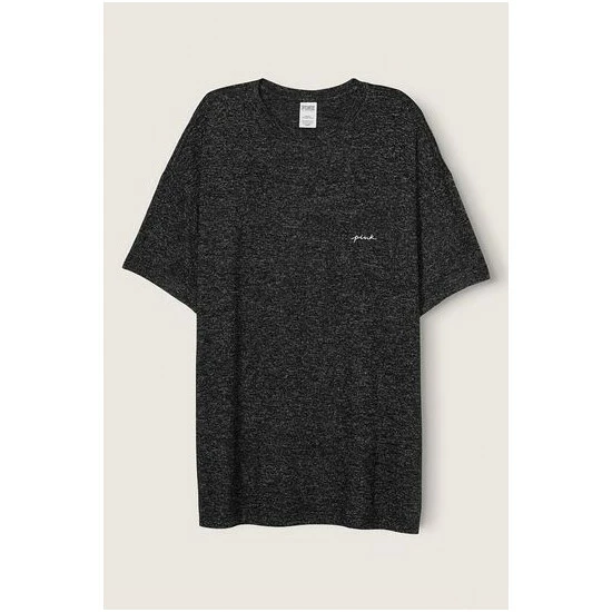 This style is partially made from recycled materials. Relaxed fit. Short sleeve dress with chest pocket. 32” body length. Cozy jersey fabric.