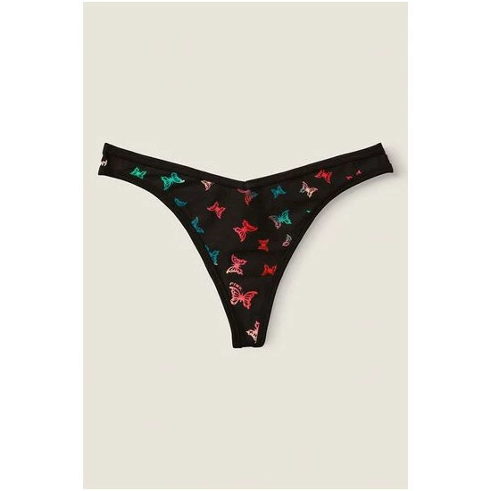 Victorias Secret PINK Victoria’s Secret PINK Pure Black Butterfly Print Cotton Thong Underwear