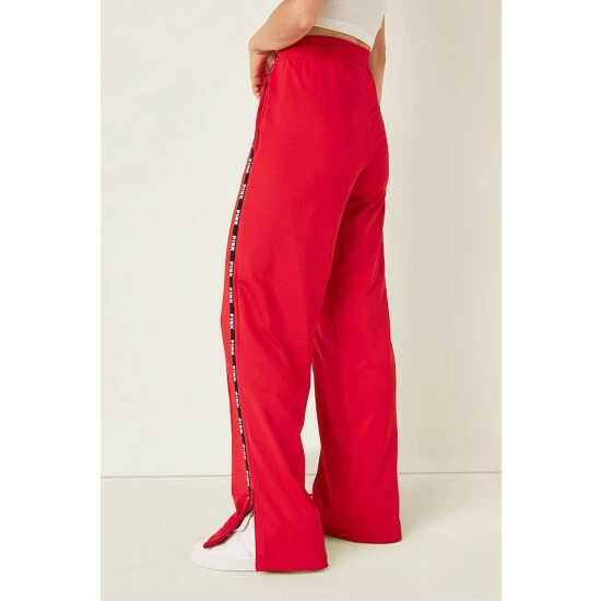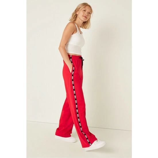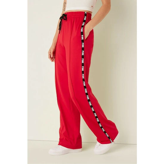This style is partially made from recycled materials. High Waist. Relaxed Fit. Tape Side Stripe Detail. 2 Side Phone Pockets. Drawstring at Waist. Pintuck Detail. 30.5 Inseam.