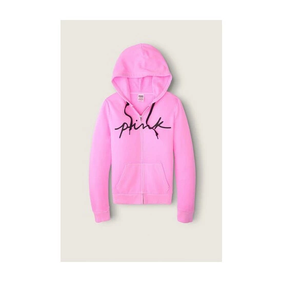 Victoria’s Secret PINK slim fit zip up hoodie in comfy soft lounge fabric. Features adjustable drawstrings and front pockets. 24 length. 60% cotton, 40% polyester. Machine Washable.