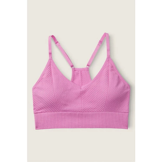 Lightly Lined, Wireless. Removable Padding. Pull-on style. Seamless fabrication. Adjustable straps. Low Impact, 4-Way Stretch, Seamless Comfort, Breathable Fabric Comfortably constructed with minimal seams.