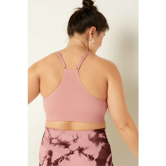 Lightly-lined, wireless -removable padding. Pull-on style. Seamless fabrication. Adjustable straps. Low impact, 4-way stretch, seamless comfort, breathable fabric.
