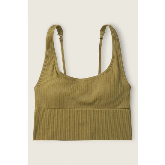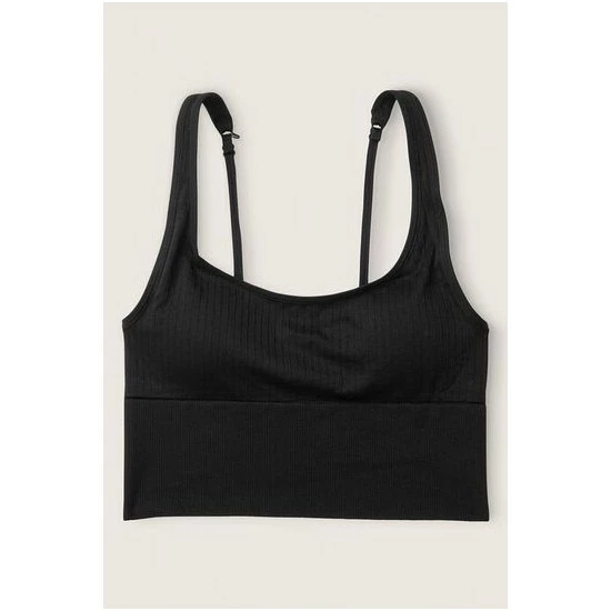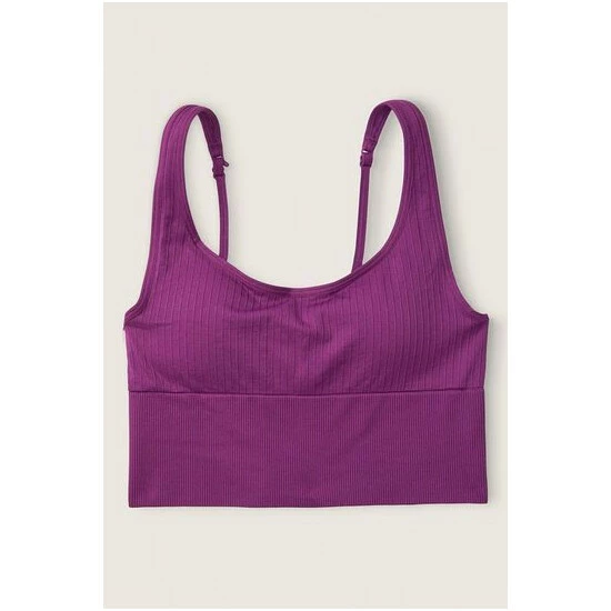 Lightly-lined, wireless. Removable padding. Pull-on style. Seamless fabrication. Adjustable & convertible back straps. Low impact, 4-way stretch, seamless comfort, breathable fabric.
