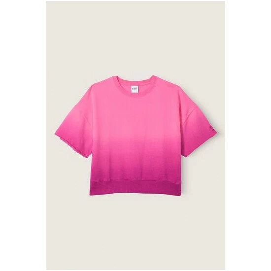 Victorias Secret PINK Victoria’s Secret PINK Short Sleeve Crop Crew Sweatshirt Capri Pink Dip Dye
