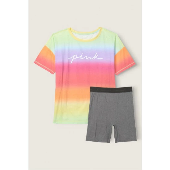 Partially made from recycled materials. Cotton Sleep Tee and Thermal Boxer Set Short, 6 inseam Tee, 27.5 body length + oversized fit.