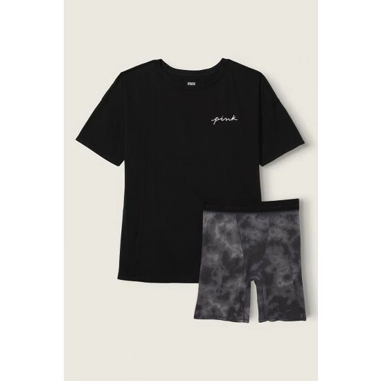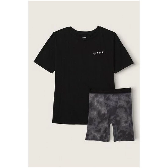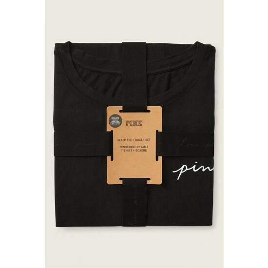 Partially made from recycled materials. Cotton Sleep Tee and Thermal Boxer Set Short, 6 inseam Tee, 27.5 body length + oversized fit.