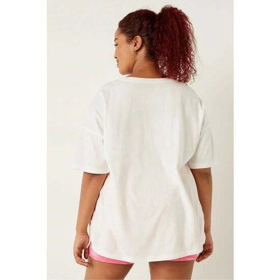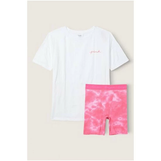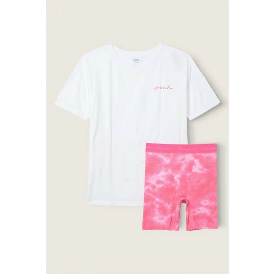 Partially made from;recycled materials Cotton Sleep Tee and Thermal Boxer Set Short 6 inseam, Tee 27.5 body length + oversized fit Imported. Tee, cotton, Boxer.