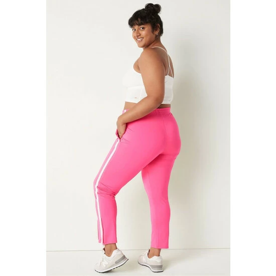 This style is partially made from recycled materials. Mid-rise. Tape side stripe detail. Zipper at ankle 2 side phone pockets 28 inseam.