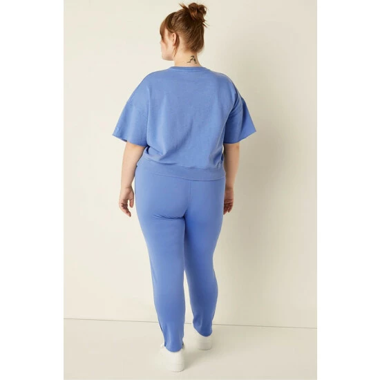 This style is partially made from recycled materials. Mid-rise. Tape side stripe detail. Zipper at ankle 2 side phone pockets 28 inseam.