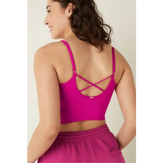 Lightly Lined. Wireless. Removable Padding with Interior Shelf Strappy back detail. Pull-on style. Adjustable straps. Low Impact, 4-Way Stretch, Wicking Fabric, Quick Dry Fabric.