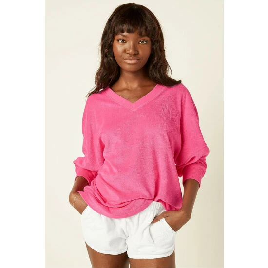 Victorias Secret PINK Victoria’s Secret PINK Varsity Beach Terry V Neck Capri Pink