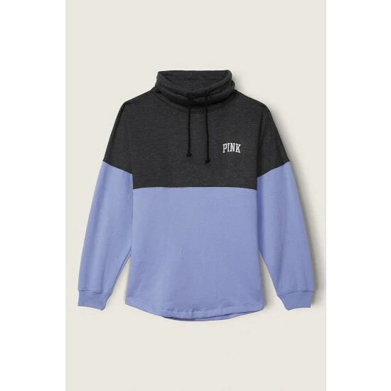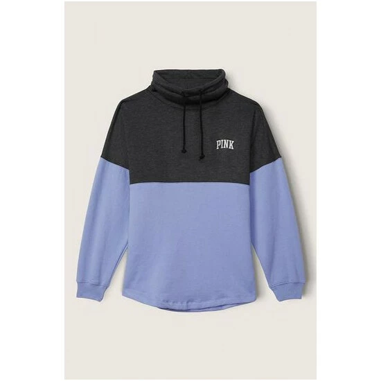 Oversized fit with cowl neckline and adjustable drawstring at cowl. Side entry pockets and rib cuffs. 28.5” body length.