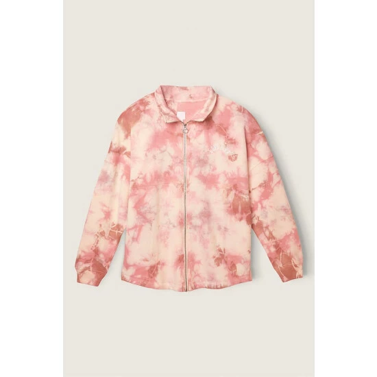 Oversized fit Mockneck collar neckline Full zip metal zipper closure Side entry pockets; Rib cuffs 28.5″ body length Imported: cotton/polyester
