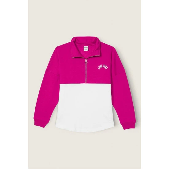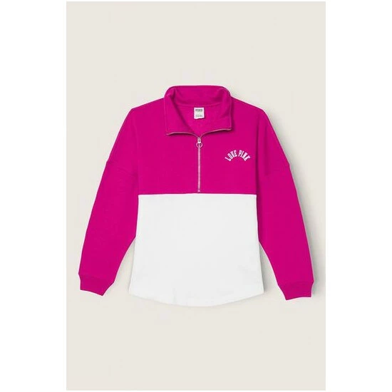 Oversized fit. Mockneck collar neckline. Zip closure. Side pockets. Rib cuffs. 28.5” body length.